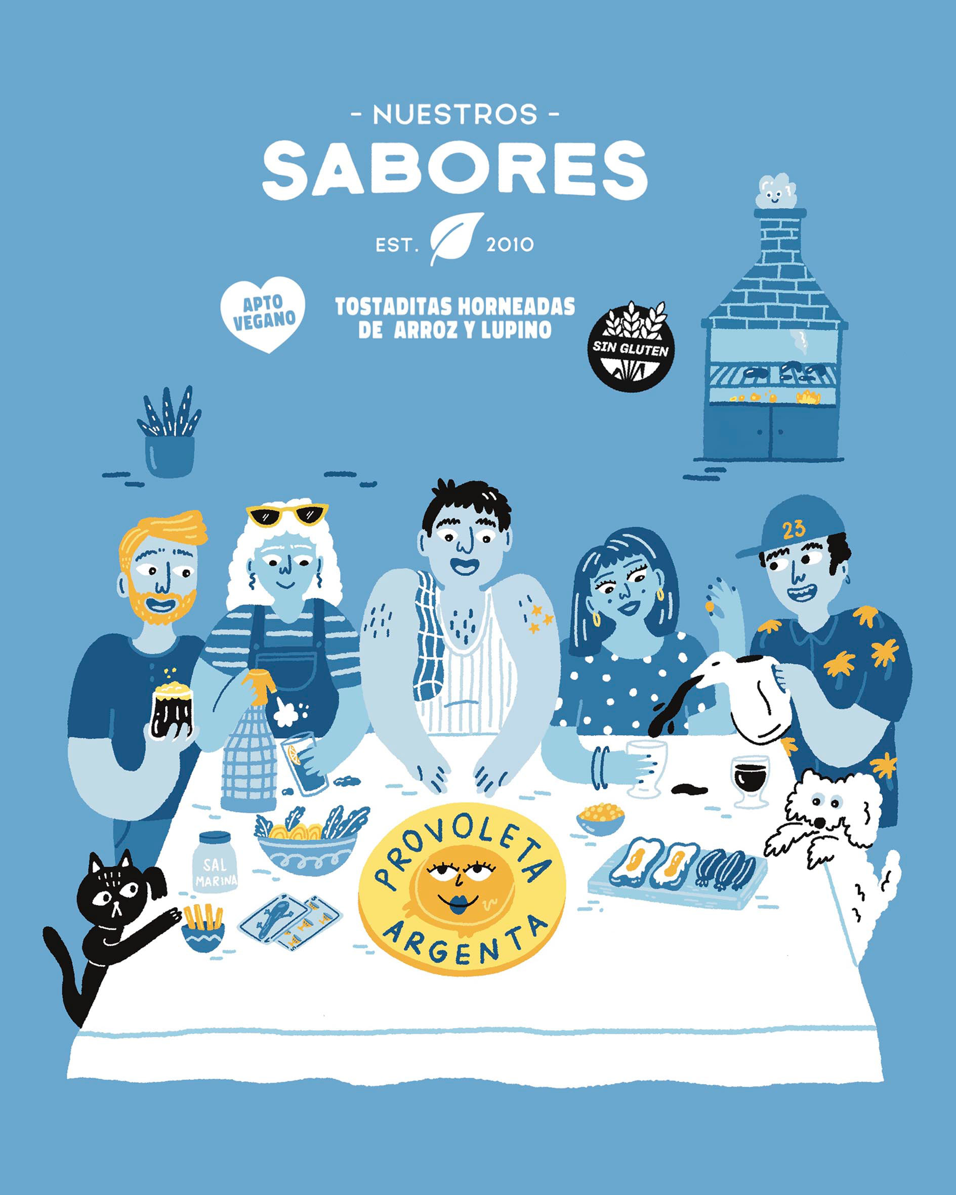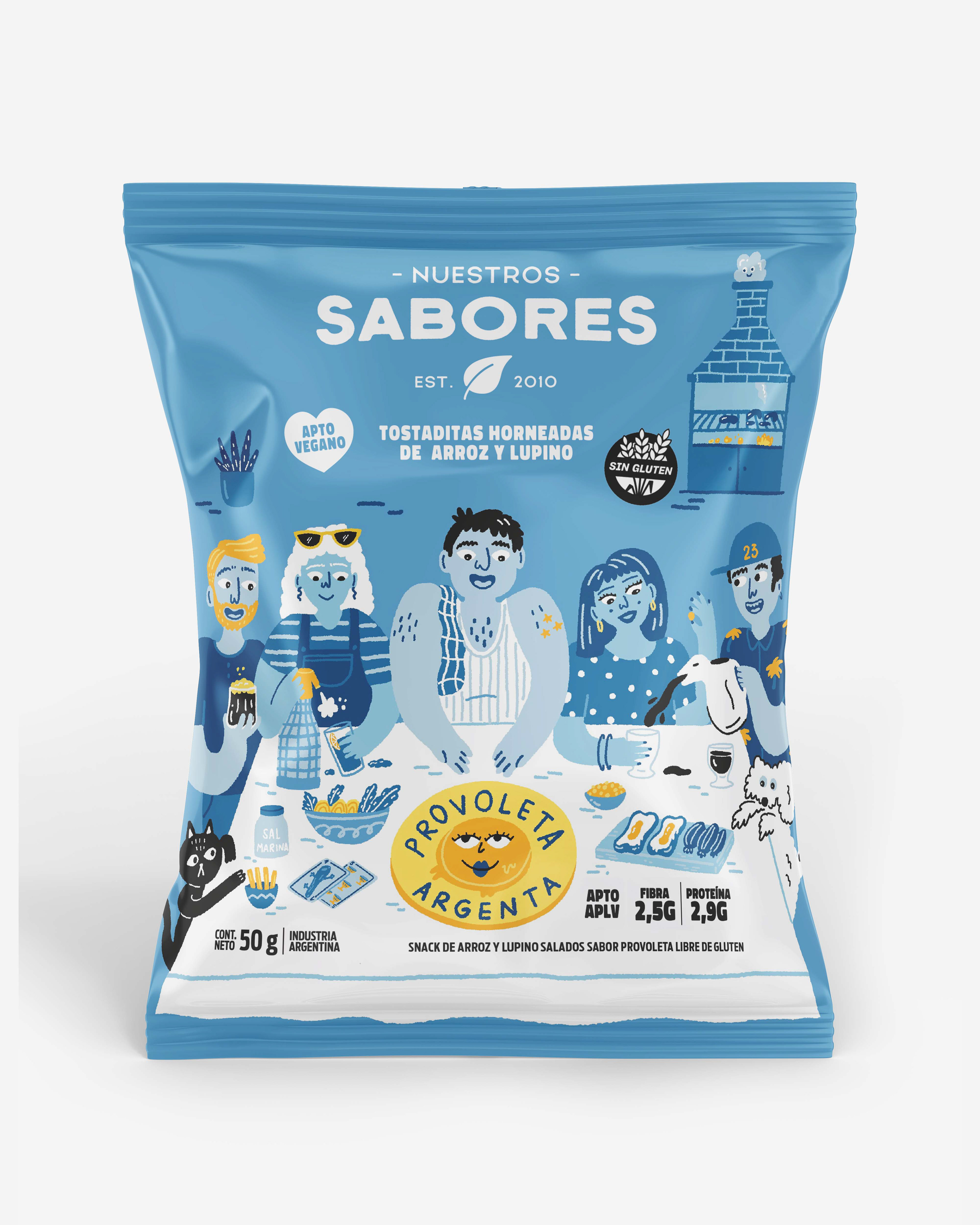 Illustrations for packaging of Nuestros Sabores rice and lupin crackers. Design by Rio Estudio