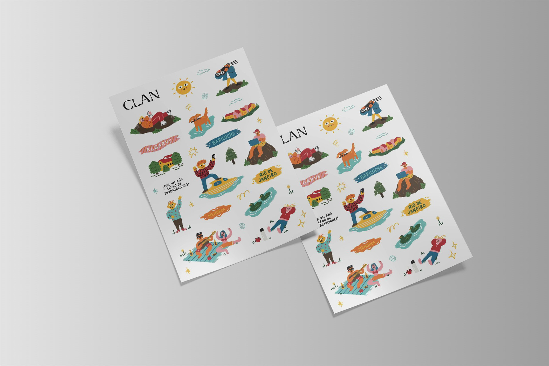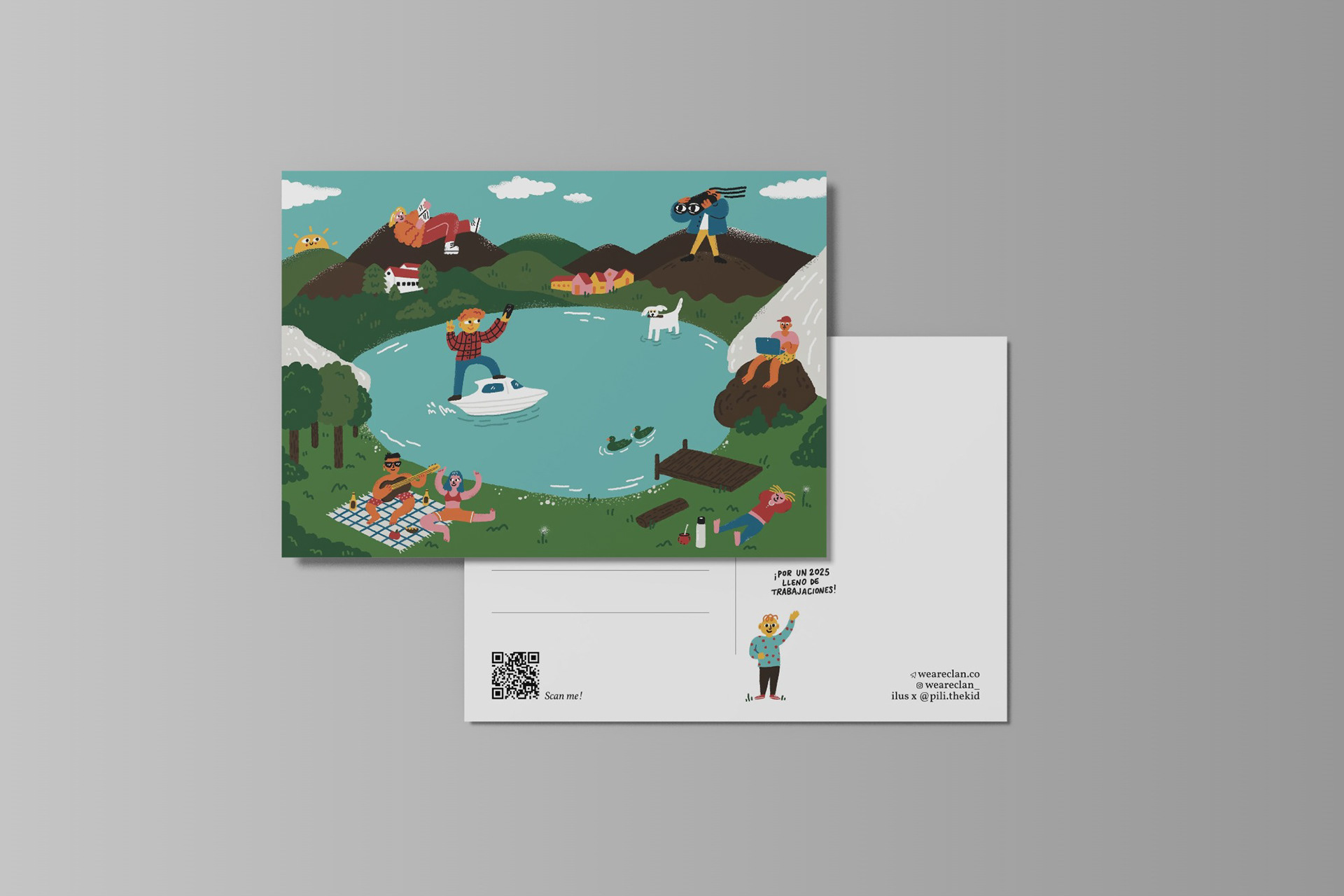 Design of an illustrated postcard and sticker set for We Are Clan, an itinerant coworking initiative.